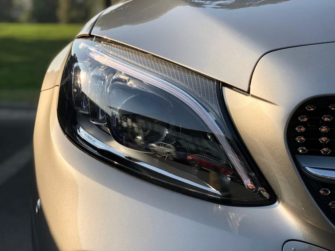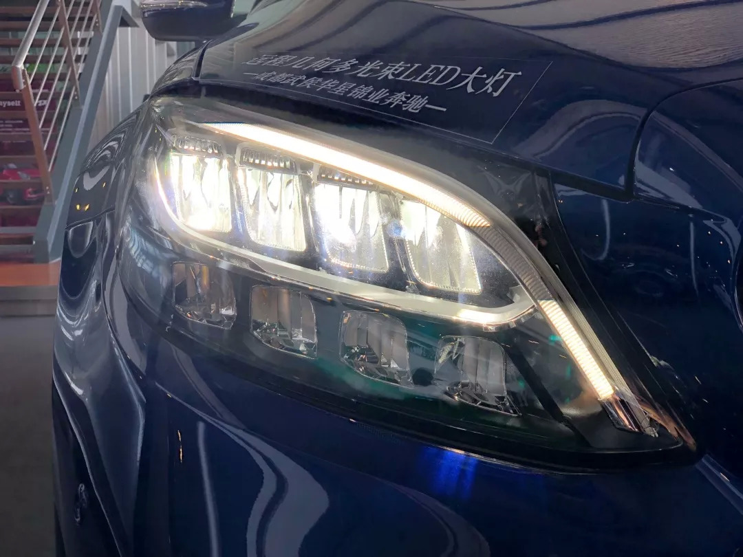 如果选装了几何多光束光源,每次点亮时的会有复杂的自检测仪式感,灯泡的造型也不简单。这套多光束大灯是从E级及S级下放至C级的,84颗LED能达成投影般的效果,该亮的地方明亮,该暗的地方暗淡,非常贴心,不过价格也略微揪心,需要花掉11000元选装,作为30万级别的车型来讲可能很多车主不愿意花这个钱,好在C300车型上它是标配项。
