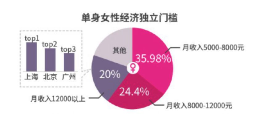 根据珍爱网发布的2018年《单身女性调查报告》显示,35.98%的单身女性认为月收入达到5000-8000元之间即可经济独立,20%的受访者认为12000以上的月收入才能确保经济独立。