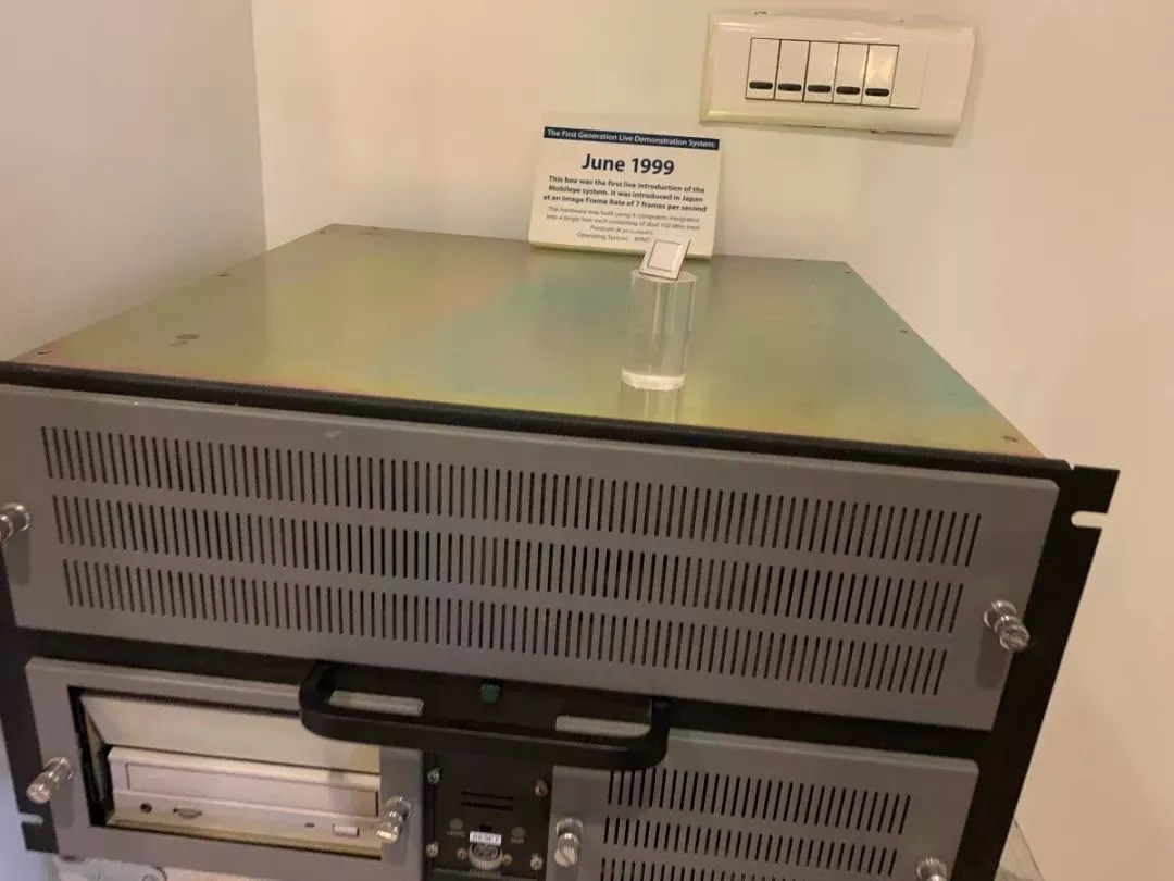 在Mobileye总部展示区摆放着从1999成立至今的各种研究成果,对于参观者而言其最直接的感受是芯片体积从大到小的变化。