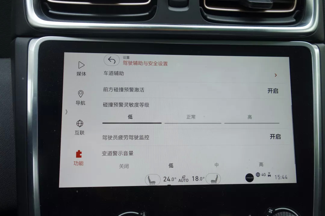 领克01的中控界面布局跟沃尔沃极其相似,特别是主动安全系统的设置,和前些天试驾的V90CC几乎一模一样;