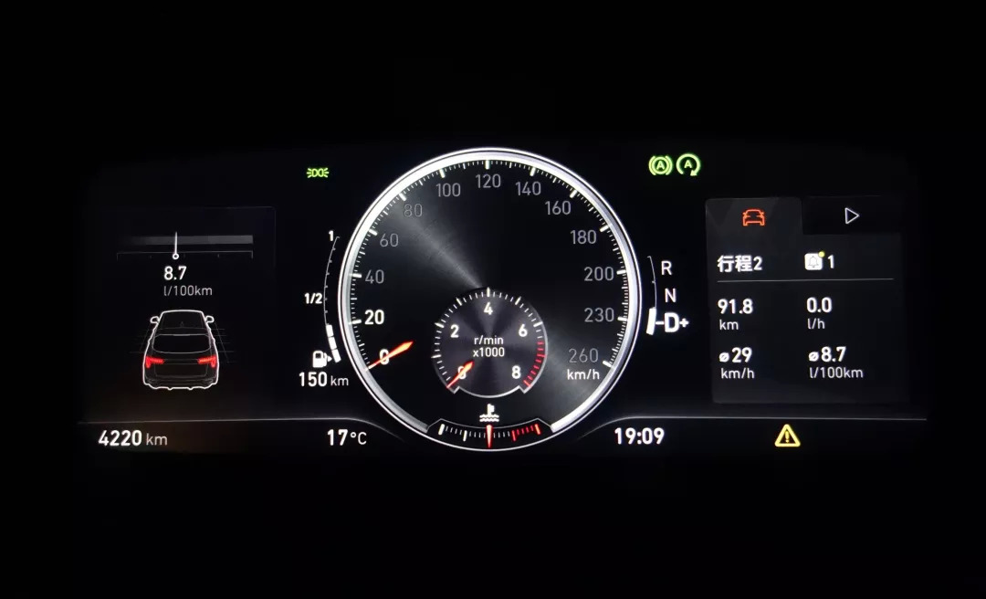 液晶仪表盘有三种模式可选,然而每一种的显示信息都太多了,看起来略显繁杂;