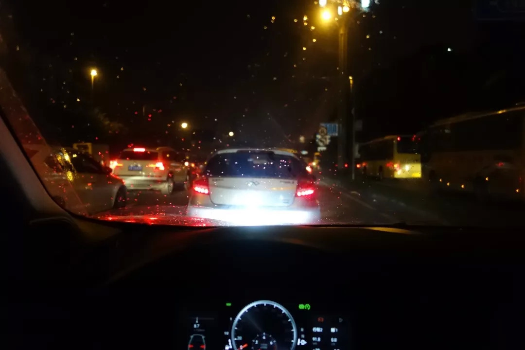 夜晚的时候,LED大灯在前车尾部反射的强光会照到驾驶员;
