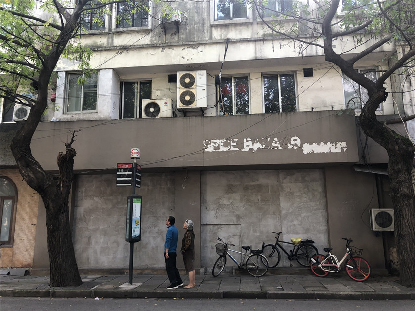 东平路西段则更早迎来了另一番光景。这里曾经因为连锁西餐厅Glo London、慈善艺术空间VALE、飞跃鞋集合店CM Feiyue等店人气旺盛,但几个月前陷入沉寂——路一侧铁门深锁的和平官邸内的喷泉水声成了白日里这条路上最喧嚣的存在;路上偶然经过的拖着行李箱的旅客,都能因为行李箱轮子和柏油马路发出的撞击声而变得格外扎眼;大片被灰色水泥涂抹的墙面奠定了整段路的新视觉基调;路边房屋玻璃窗户上残留的COFFEE、WINE等字样显得颇为违和。