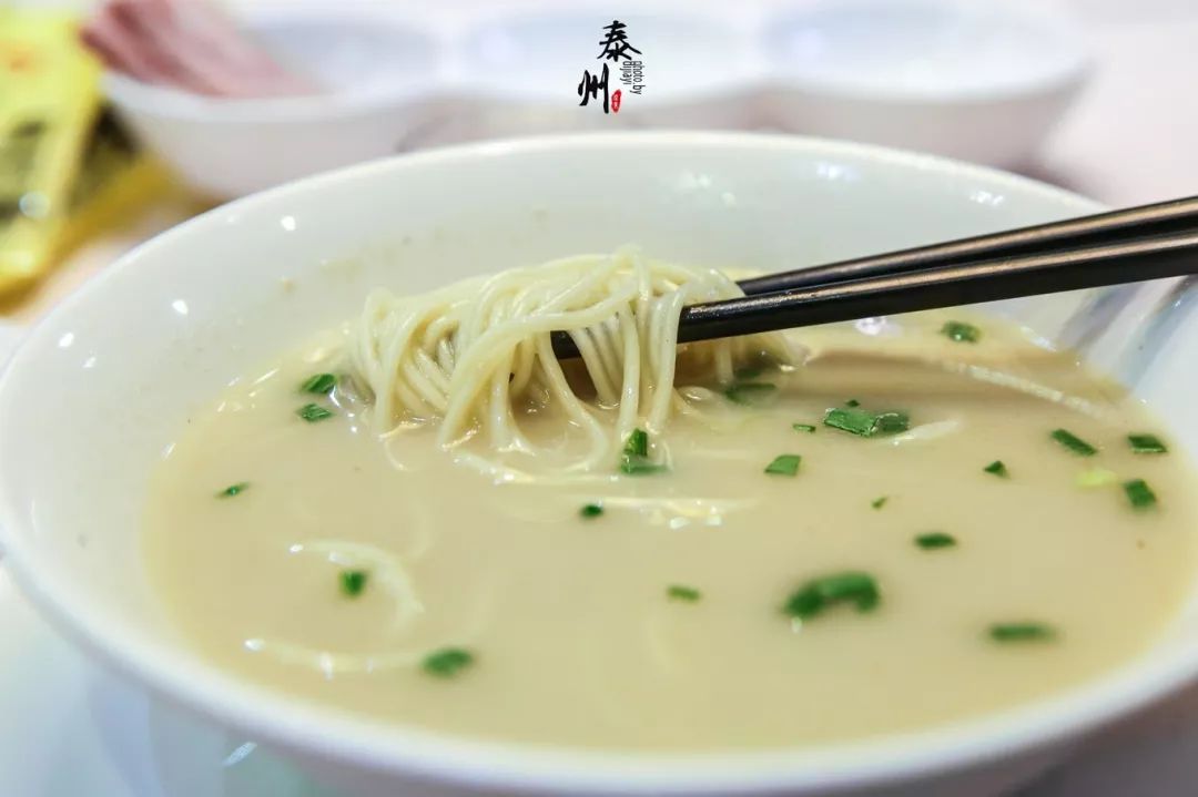 泰州鱼汤面区区一碗汤面,却是处处考究,煞费苦心。最为关键的则是制作鱼汤。取鳝鱼骨用荤油反复烹炒后,加进大块猪肉,同锅猛火煮烧,小火煨煮。经过熬制后,鱼汤醇厚,色白如乳,肥而不腻,鲜而不腥,汤浓、味鲜、面香。