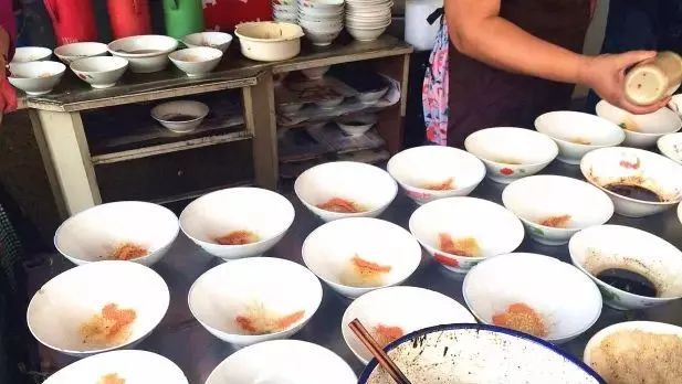 一不小心就开了十多年的干拌,泰州知道的人还真不少。每天3点阿姨们就早早起床开始准备了。干拌的点晴之笔离不开好的酱料,这些碗里的酱料都是天还没亮就准备着的!