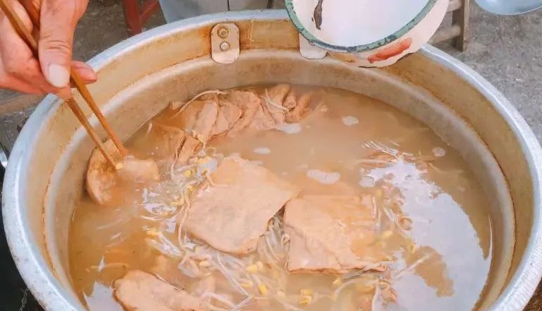 一干可两吃,侵泡在汤汁里的回炉干配上豆芽,不似油炸的酥脆,这个软软的,一口下去还能吃出汤汁儿来!