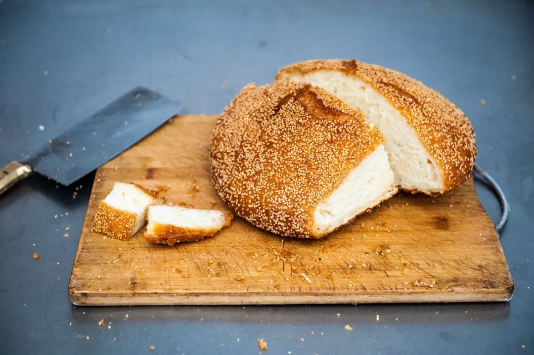 把烧饼的面子托在手上,一大碗茶搁在旁边,用手撕(烧饼的)底板慢慢地嚼,吃面子的时候,再把它裹起来,放到嘴里嚼它,麦香溢满了整个口腔。