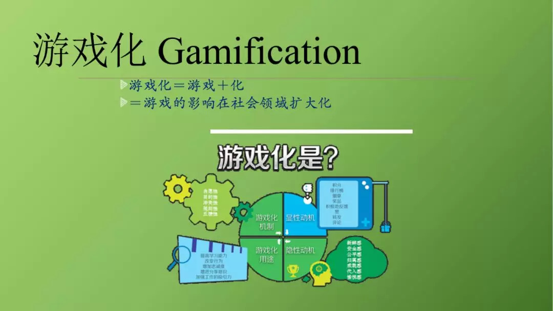 游戏化,英文叫Gamification,指的是将游戏里的设计理念、规则要素用在游戏以外的地方。