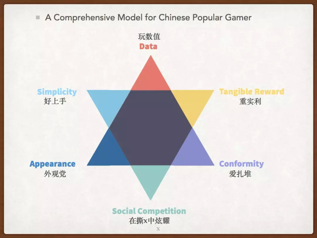 基本上,无论是游戏还是游戏化产品,只要是在中国流行,多半符合这个模型。近两年来最火热的游戏,比如王者荣耀、吃鸡都符合这个模型。