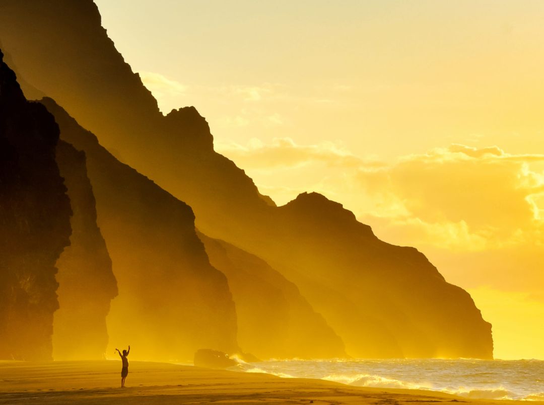 旅程的高潮便是在日落时分,抵达旧时庄园主人面朝大海的花园小屋享用晚餐,别墅至今还按照主人原来的起居室装饰布置,就像真的在主人家里用餐。用完餐,去海边漫步,夏威夷的日落依旧美得心醉。
