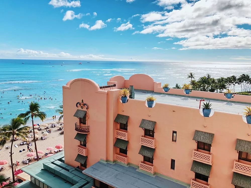 威基基皇家夏威夷豪华精选度假酒店,绝对称得上是夏威夷的网红地标,整个酒店从内到外都是少女心爆棚的粉色,连服务生的衣服也是粉色。因此也有“太平洋上的粉色皇宫”(Pink Palace of the Pacific)这一玫瑰色的昵称。