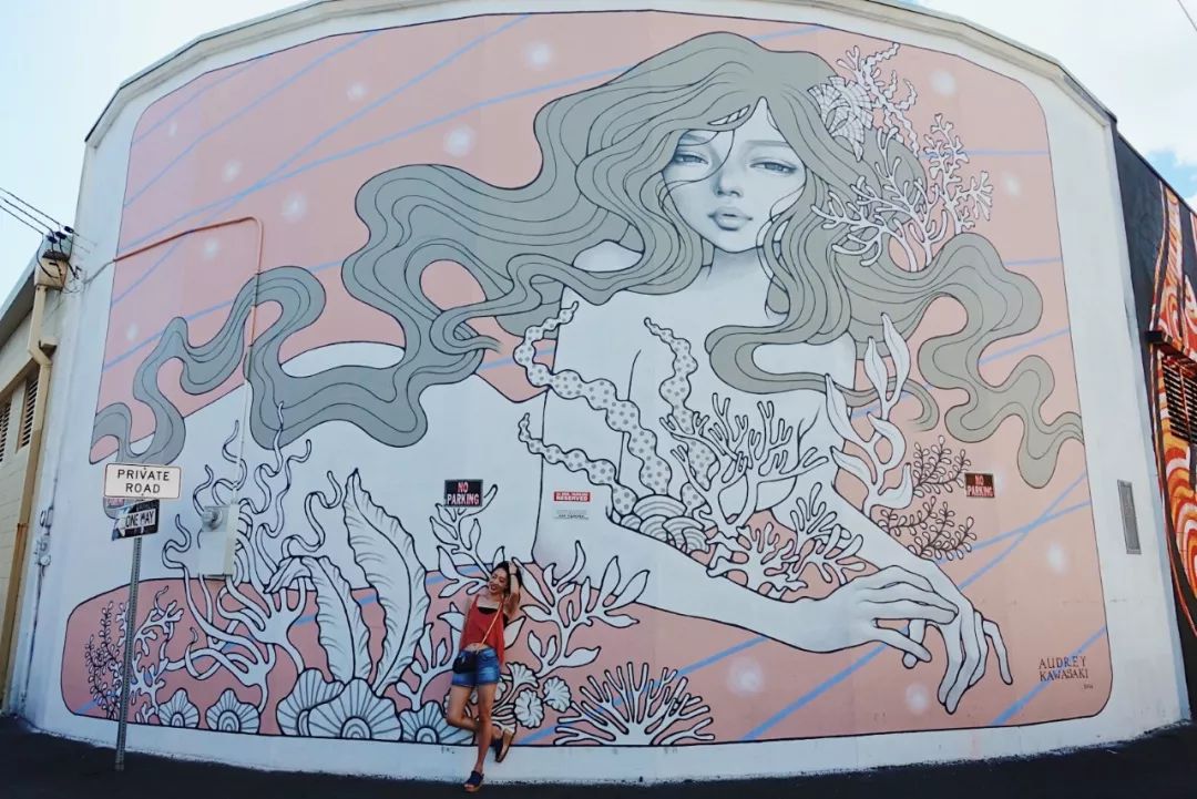 在欧胡岛还有一处INS上热门的夏威夷打卡地——POW! WOW! Hawaii。涂鸦艺术一直以来都是夏威夷常见的街头文化,这片涂鸦街区有来自世界各地涂鸦艺术家的作品,融入了夏威夷本地独有的文化,时尚小姐姐们当然不能错过跟涂鸦墙的各种pose照。