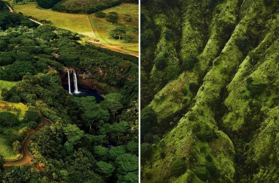 夏威夷最古老的可爱岛之所以小众,有一部分来自于只有3%的土地被开发。中部险峻的山脉、瀑布、森林等等,都始终完美得保持了原始的状态。自驾和徒步都很难抵达这些区域,于是直升飞机成为了唯一可以观察可爱岛全貌的方法。
