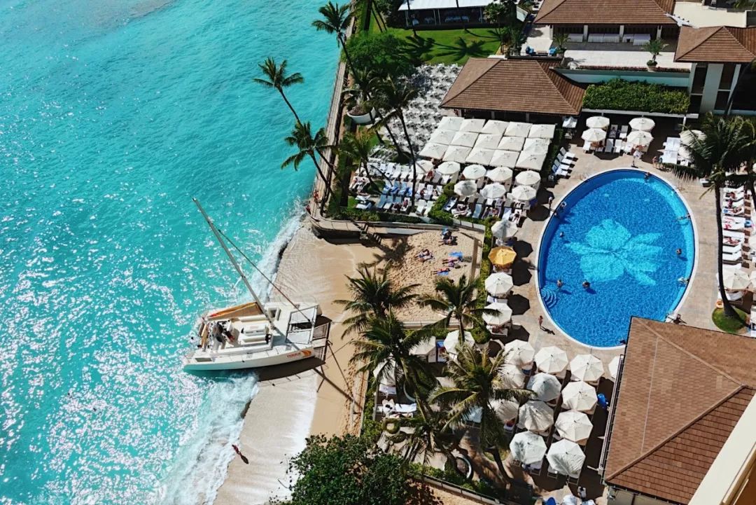 从酒店客房窗户望出去,就是一张很经典的夏威夷明信片。