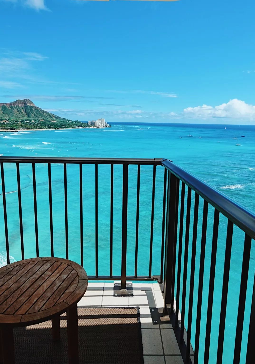 从酒店眺望出去,窗外是夏威夷旅游杂志封面上的经常看到的最典型夏威夷风景。还是夏威夷极少数能同时看见钻石山和威基基海湾风景的酒店。
