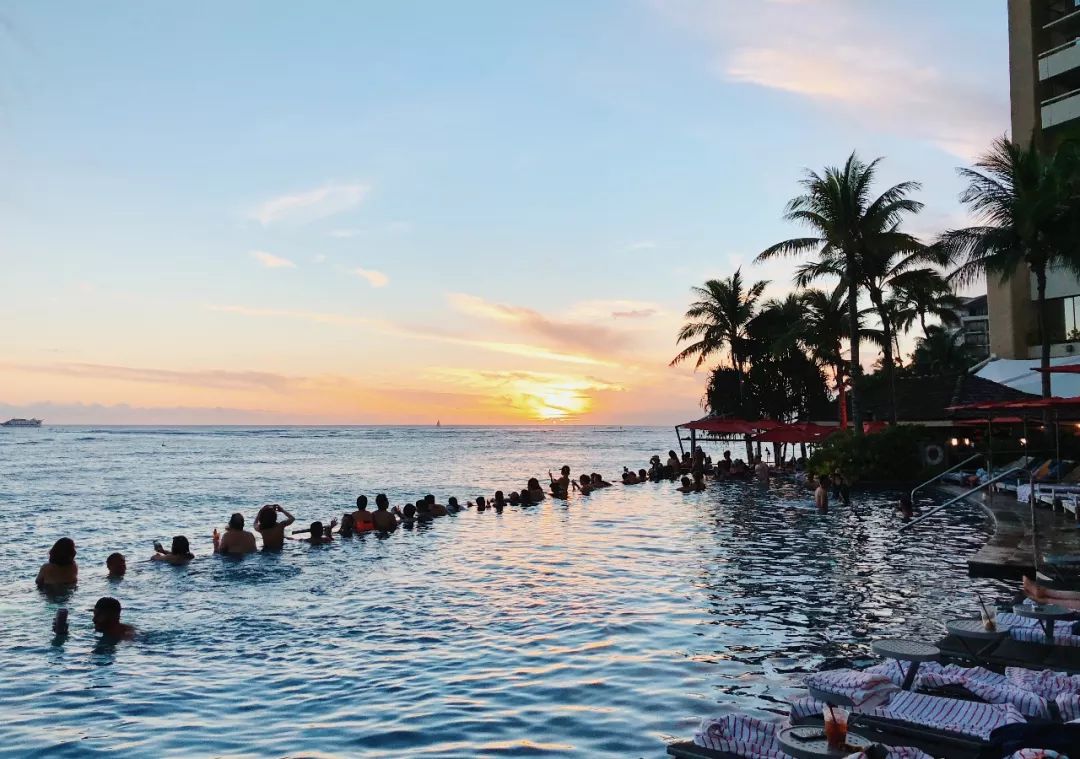 还有这间喜来登的无边泳池,是夏威夷及北美最长的海滨无边泳池。特别是日落时分的风景,简直令人惊叹。