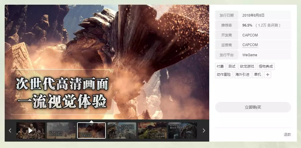 《怪物猎人:世界》曾是全国玩家翘首以待的3A级大作,如果它能够成功发售,不仅能为WeGame摘下“中小游戏平台”的帽子,更能证明它的确是一个具备国际价值的游戏平台。