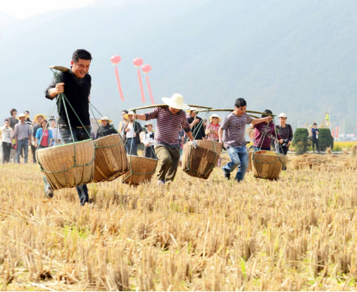 运动庆丰收。稻子熟了,粒粒饱满,阵阵稻香。田园里柿子、红薯、花生、玉米赶着趟儿前来报道,这一片古老丰收的景象,提醒我们节日到了,美好再出发!