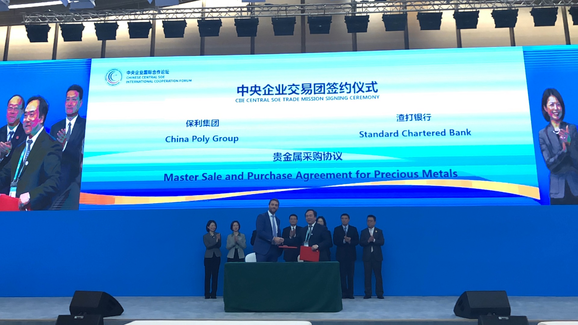 11月6日,界面新闻从进博会现场获悉,保利集团旗下贵金属贸易商中工美进出口有限责任公司与渣打银行签署了贵金属战略合作意向书。双方约定自合作意向书签署后的两年内,渣打银行将为中工美提供总价值约一百多亿人民币的贵金属。