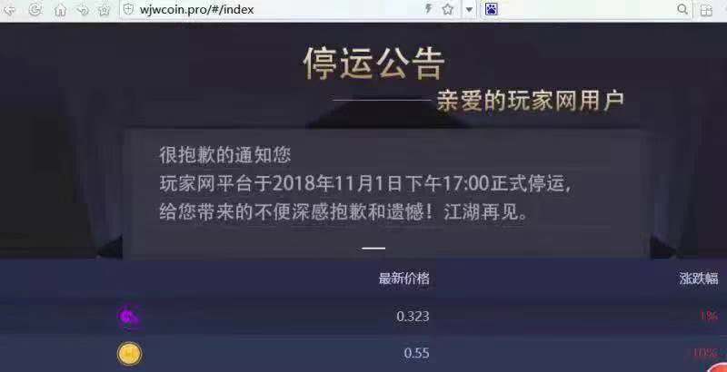 凉凉币市之下,在币圈金字塔顶尖的交易所开始了残酷的淘汰赛。11月1日下午,数字货币交易平台玩家网发布公告“正式停运”公告。