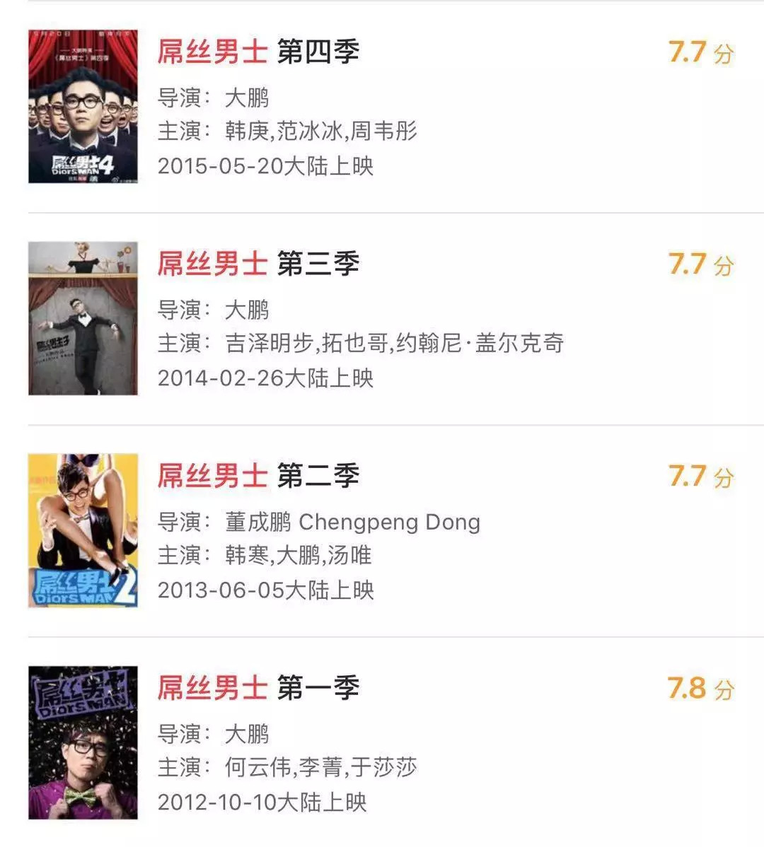 最终,《屌丝男士》连续四年四季刷新了互联网自制剧的纪录,猫眼评分平均每一季在7.7分,而且,大鹏更获得了“47亿播量”的身价。何况,他靠该剧的主题曲《那丝也有春天》也小小圆了一次音乐梦。