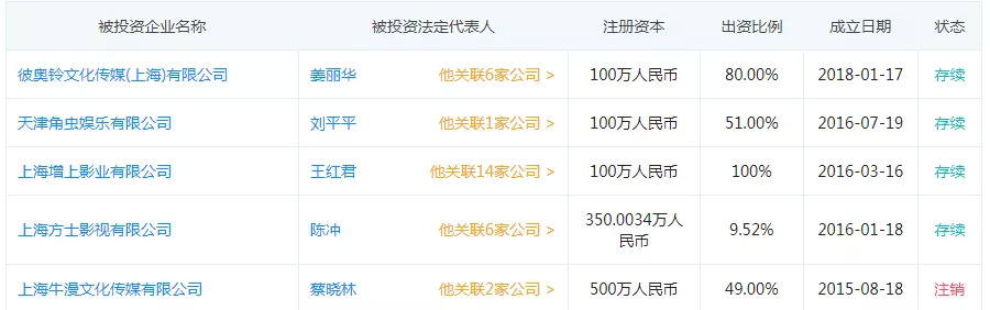 麻辣娱投(id:malayutou001)记者通过企查查发现,除了上述与合作伙伴宣布的影视化计划,童石网络还自行设立了或参股了两家影视公司,分别为上海增上影业有限公司、上海方士影视有限公司。