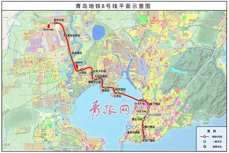 地铁8号线全长约60公里,北起胶州北站,经青岛新机场、红岛高新区延伸至市南区的五四广场,是山东省新旧动能首批优选项目,也是目前全市地铁线路中唯一一条连接新机场的线路。截至目前,8号线18座车站已开工建设16座,其中3座车站完成主体结构施工,17个区间已开建16个,红岛火车站落客平台提前完工。