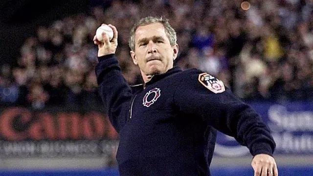 而FIRST PITCH最具象征意义的,无疑是2001年10月30日那天。当年世界系列赛对阵双方是纽约洋基和亚利桑那响尾蛇。第三场,小布什来到了现场。这场比赛的意义在于,这是“911”发生后,最高水平的棒球决战在纽约城的第一场比赛。当小布什身着NYPD制服投出第一球时,整个洋基体育场看台高呼“U-S-A”。所有美国媒体承认,只有棒球,能把整个纽约,不,整个美国,团结的那么一致。