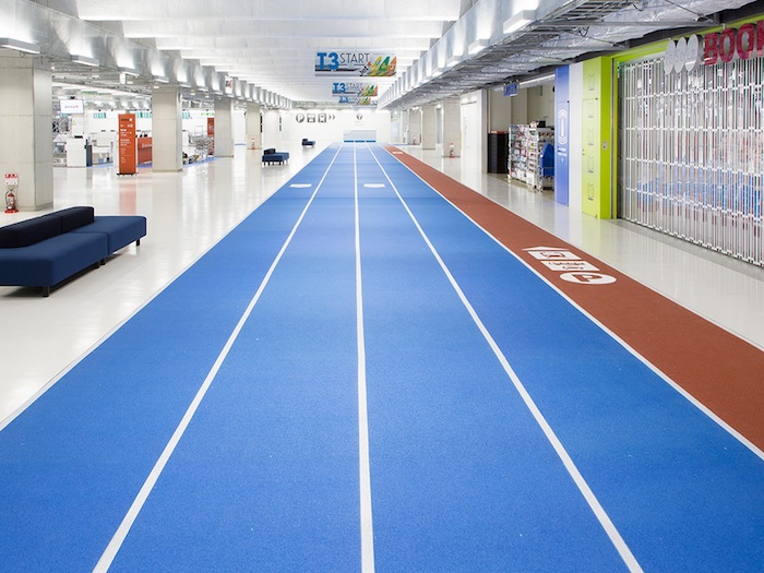蓝色引导出发,红色引导到达,根据人流量估算,无印良品还在地面设置了颜色指路标志。这样即使航站楼再大,乘客也不会轻易迷路。