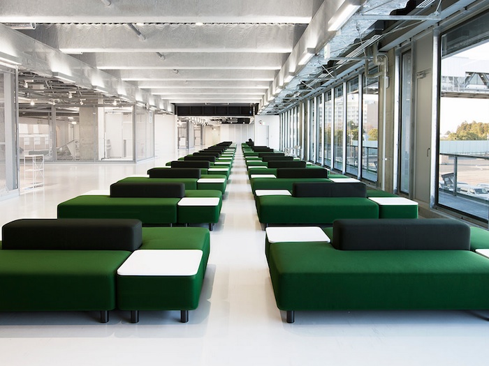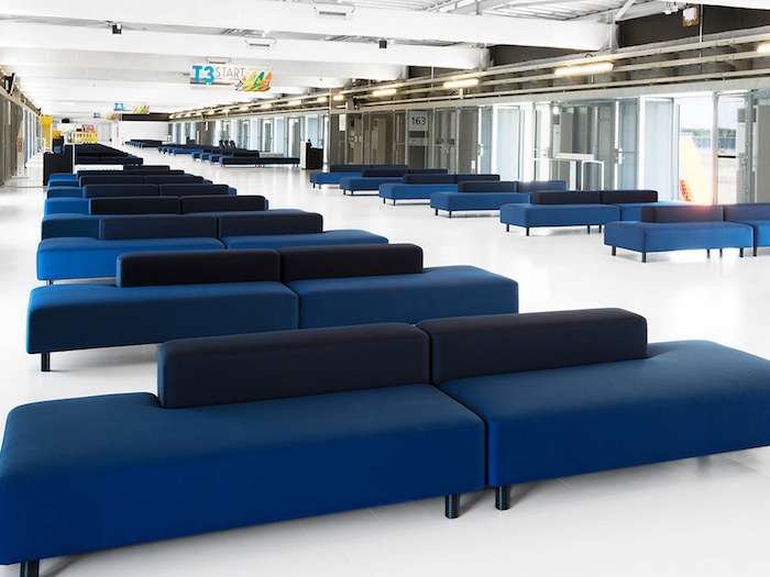 虽然设计简单,但是机场内部有很多贴心的细节设计,比如每一张沙发都没有把手,这是为了让旅客能躺也能坐,24小时随时可以休息。