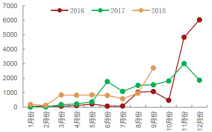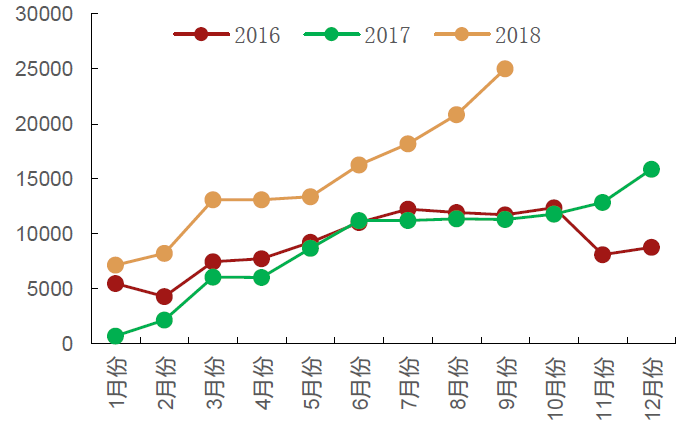 2016-2018年新能源商用车月度销量: