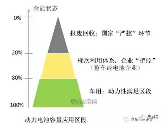 所谓的梯次利用,针对没有报废,只是容量下降无法被电动汽车继续使用的电池。指将电池组拆包,对模块进行测试筛选,再组装利用的方法。