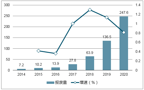 中国动力电池报废回收量(千吨):
