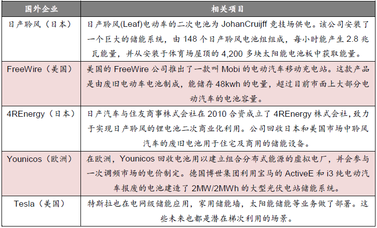 国外梯次利用项目: