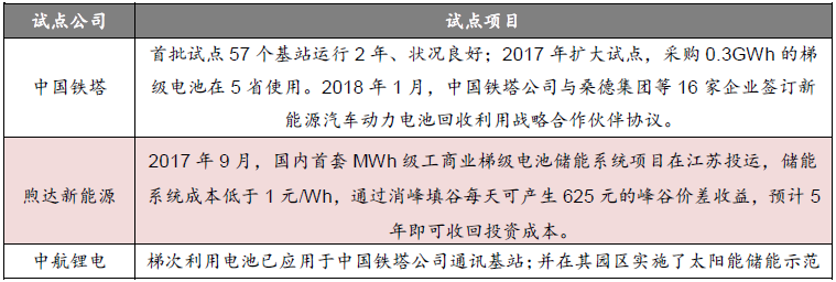 国内梯次利用的试点项目: