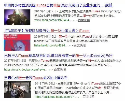 但在面向国内宣传时,这些细节就被有意无意忽略了,全部都成了“xx歌手拿下了iTunes榜第一”,这对于一些歌手的宣发团队来说,就成了再好不过的素材。