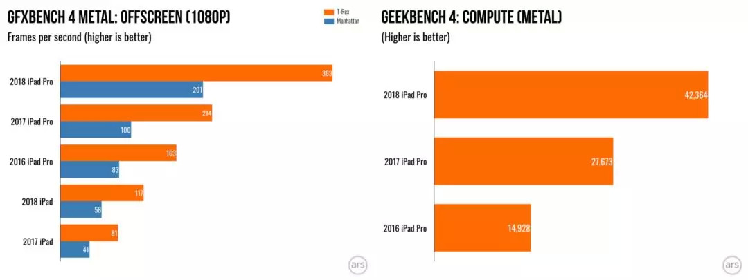 Offscreen和Compute方面,iPad Pro与iPhone性能对比