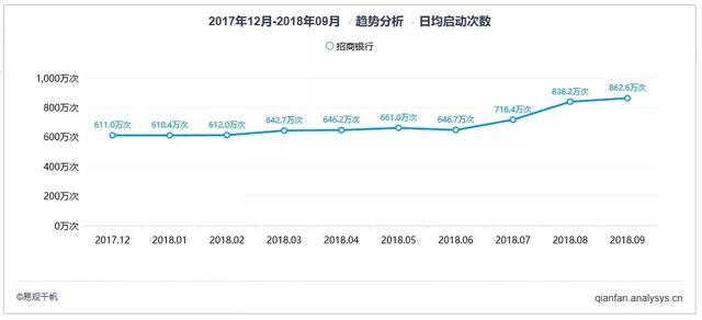 2018年9月,银行综合服务应用行业活跃用户整体呈现稳定增长态势,银行从多方面加强APP运营,提升竞争力及用户活跃度。一方面,不断加强APP升级迭代,如招商银行APP 7.0、掌上生活7.0同步上线;另一方面,持续开展多种多样的营销活动,如建设银行手机银行“寻宝记”、中国银行手机银行话费充值送优惠、平安口袋银行生活缴费代扣有礼活动等。