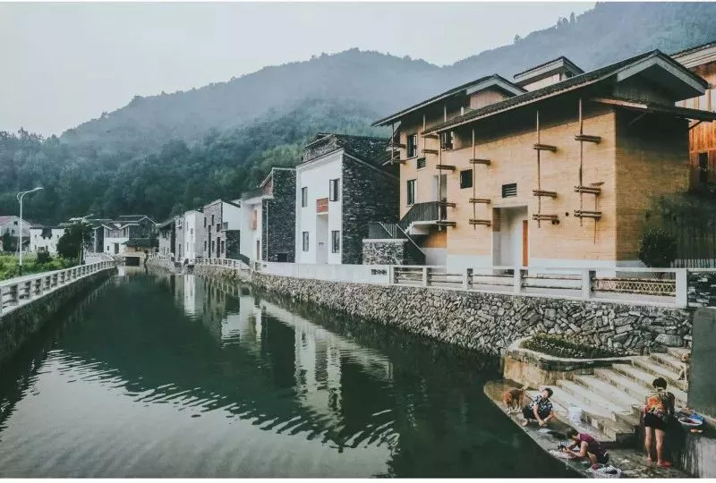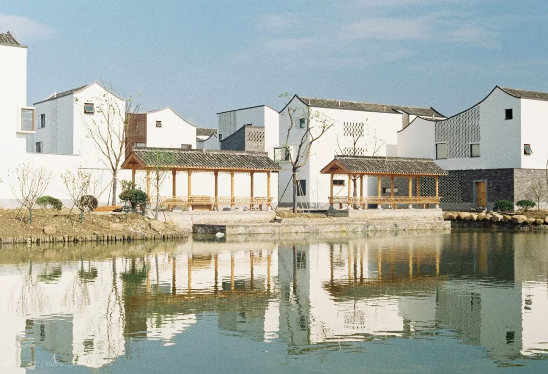 立于水边的新建民居非常好拍,不用什么高难度的技巧,仅是将建筑和倒影拍进同一个画面里就有极大美感。