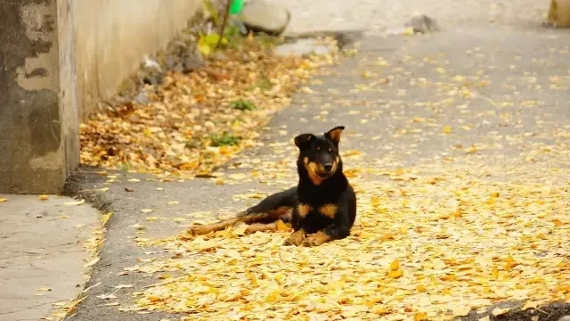 风雨过后,银杏叶落了一地,让整个银杏公园变成金黄一片。