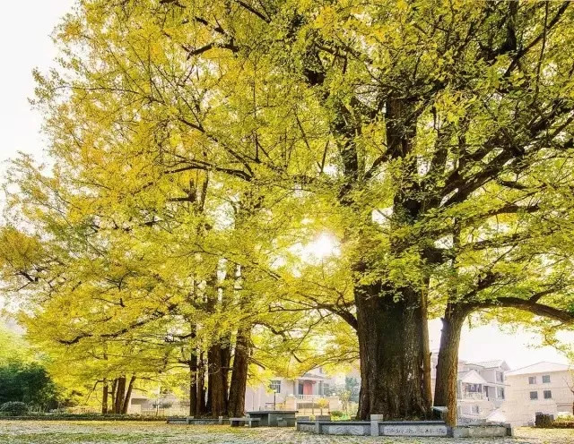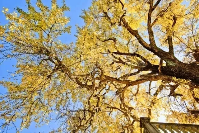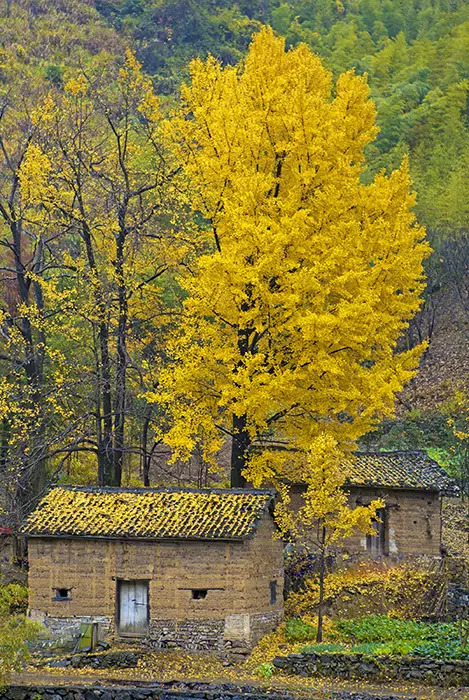 杨家村百年以上的银杏树足足有1200多棵,每到11月,村子周围方圆数公里数千棵银杏汇成金黄一片,中间穿插着红枫绿树,色彩斑斓一见倾心。