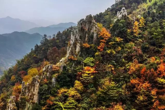秋天登山前往九仰坪,可以观赏满山红峰,运气好的还能看到云海。耸立于山脊的成排天然巨石,被称为“石长城”,是最为热门的拍照打卡点。