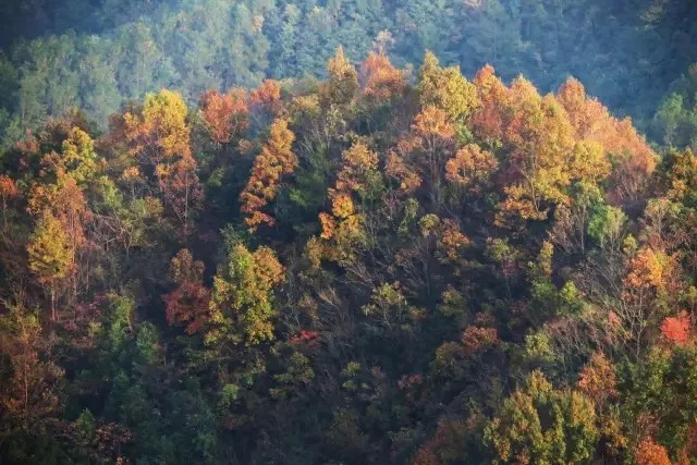 浮云岭,只是听名字就能带来无数美好想象。这里大概有1700多棵野生枫树,因为海拔温度的差异,颜色也各有不同,整座山岭仿佛上帝的调色盘,看一眼就让人心醉。