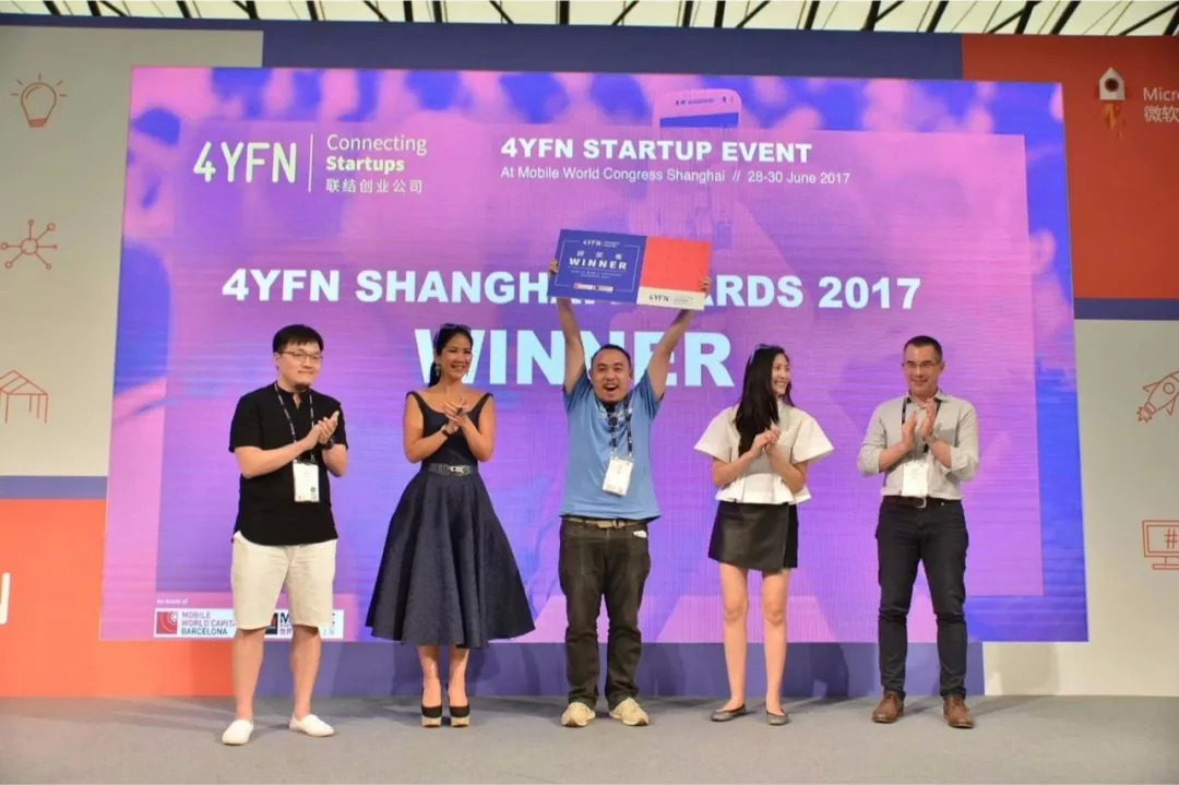 MailTime 简信获得2017世界移动大会 4YFN 创业比赛冠军,中间为黄何