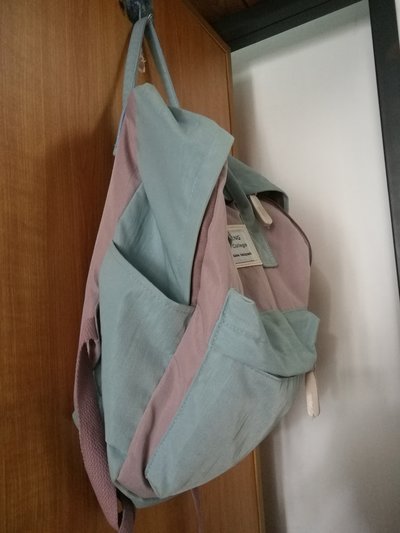 45块钱买了这个第一眼就看中的“好”包,是的,质量又好,价钱又好,配色又好。好到一出火车站前面三个人背着和我一模一样的包,回到学校也是三,四个人一起撞的那种。就背了一次,不想撞包就打入冷宫了,宁愿买个普普通通的包TAT
