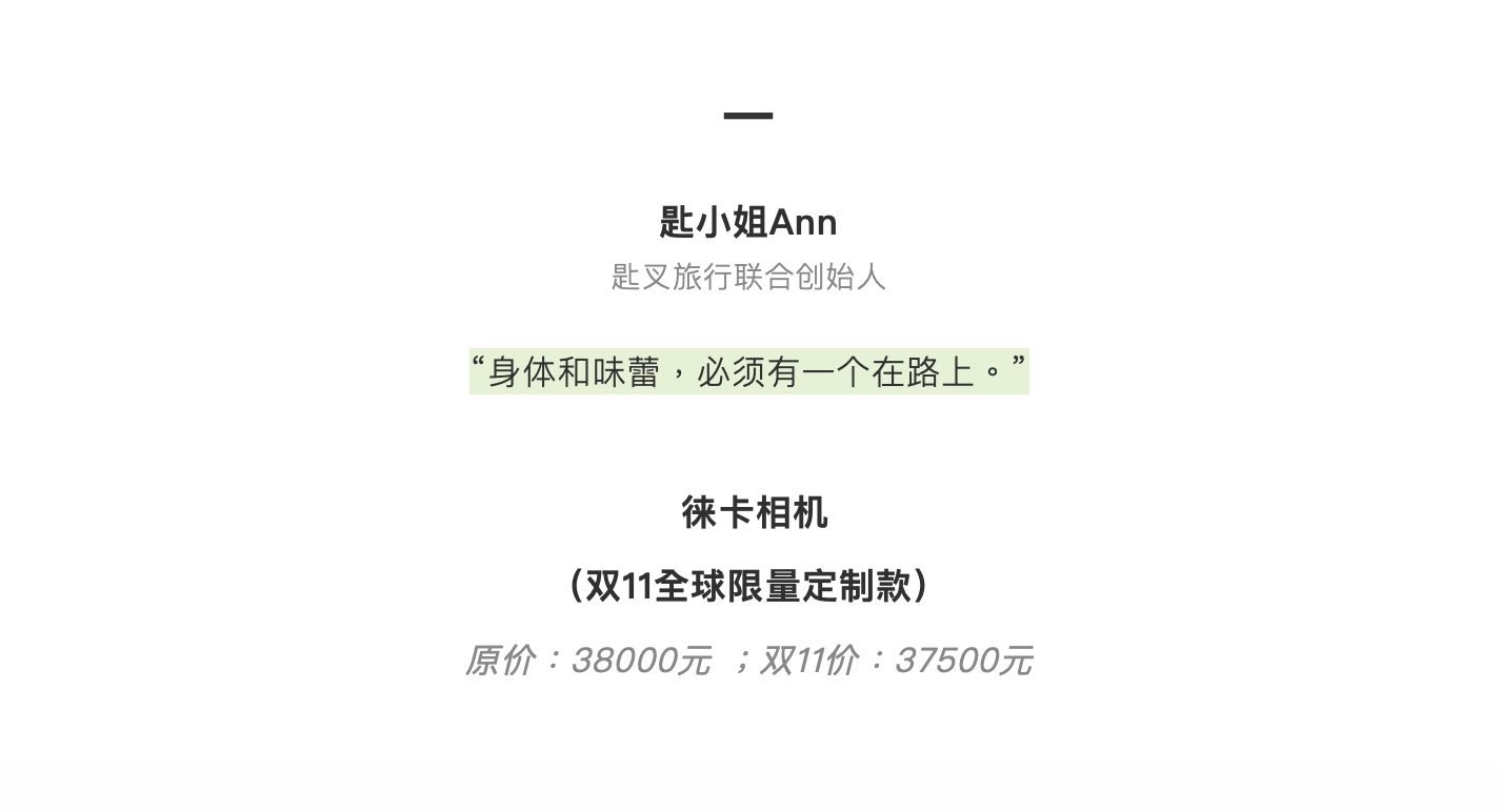👉拔草理由:一个合格的Globe trotter怎能没有一台即便携,又有型,还出片的相机呢 。Leica Q就是这样一台集三千宠爱于一身的骄子。恰逢限量城市版推出,四款颜色都让人爱不释手,趁着双十一的优惠入手最为合适,上海大象灰已妥妥躺在购物车。