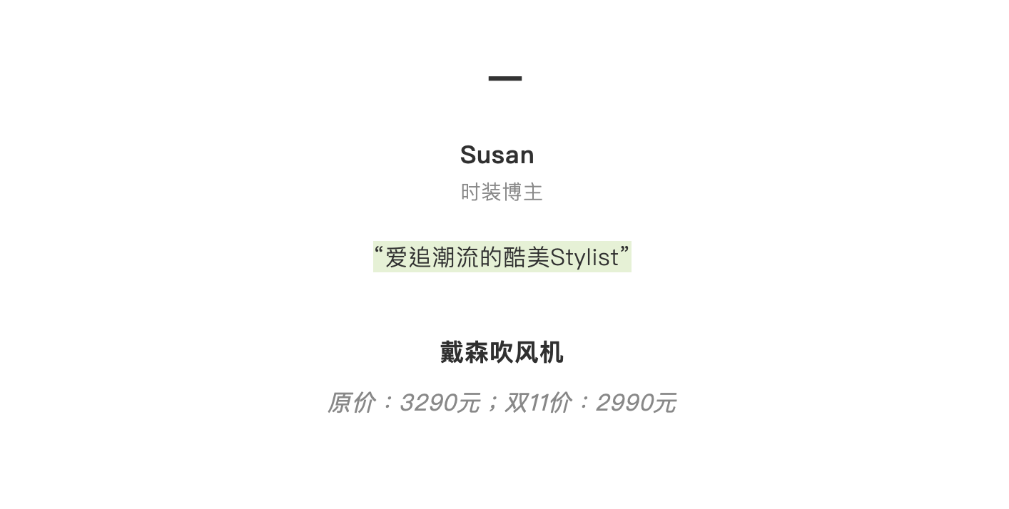 👉拔草理由:我现在主要做沙龙造型,也会接短期的广告拍摄。戴森这款卷发棒其实和以前的卷棒一样,还是需要一点专业手法才能做出好看的造型。说它不好用的其实都是手残党。而且,在不同场合,它的多变性可以发挥最大空间。更何况,一个网红级别的产品可以提升整个工作环境的品味。