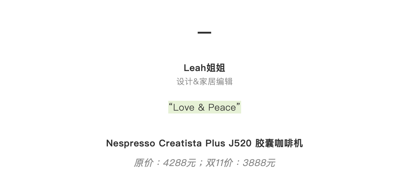 💁拔草理由:其实蛮多品牌的咖啡机都在备战双十一的,之所以选这台主要是出于对设计的喜欢。去年红点奖名单出来的时候就默默种了草,一直躺在收藏夹里,这次双十一有活动当然要下手啦。