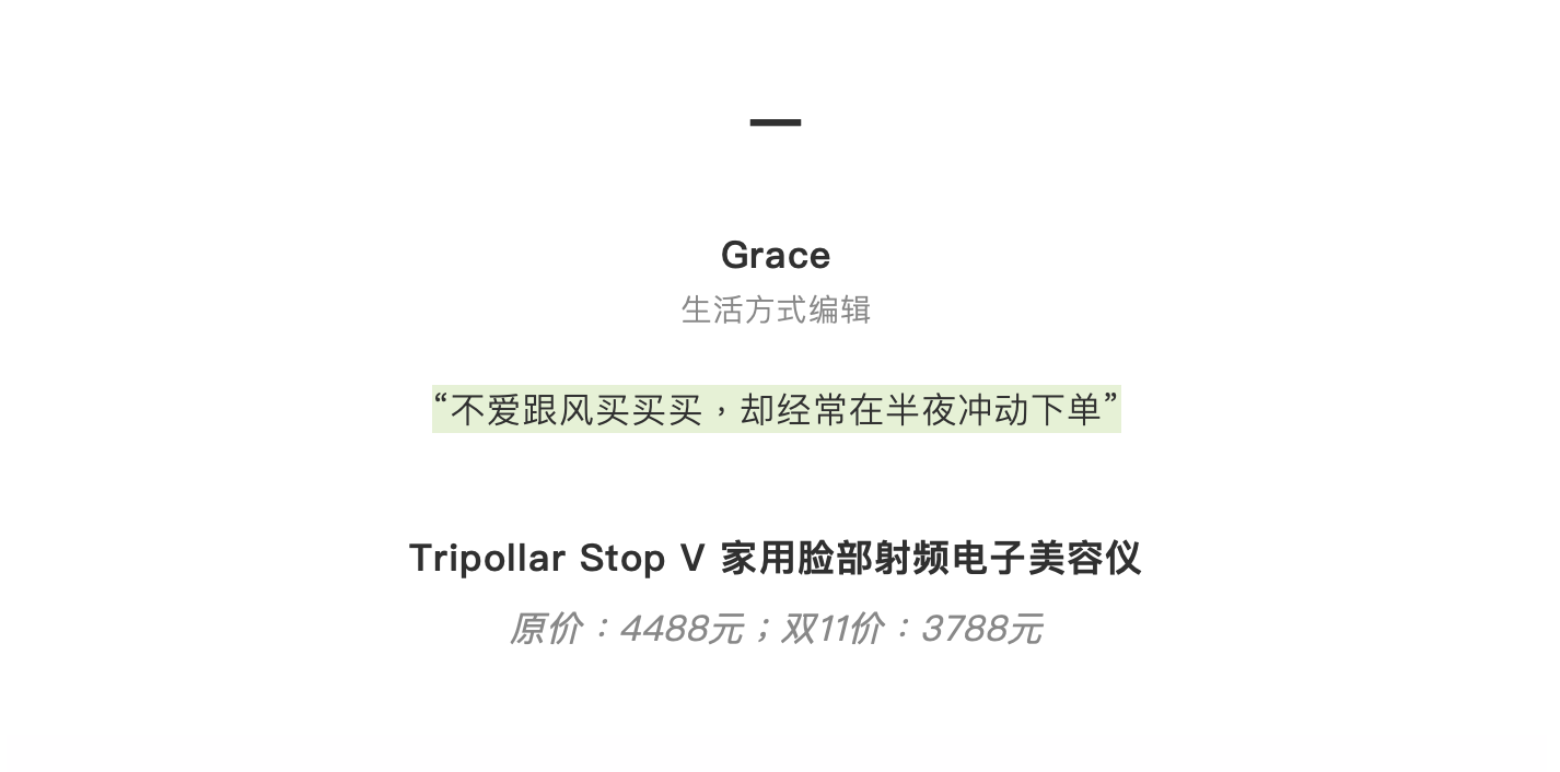 💁拔草理由:以前我对美容仪嗤之以鼻,觉得这都是“智商税”。最近照镜子总觉得自己的脸在一点点往下垮,看来真的得在脸上下点功夫了。像我这个年龄(25岁),花大价钱做医美确实没有必要,还是在家里用用美容仪来得省钱又方便。刷淘宝的时候刚好看到以色列的Tripollar童颜仪出了新款Stop V,折扣力度很大,想着要不趁机入手一台,我和老妈都可以用。