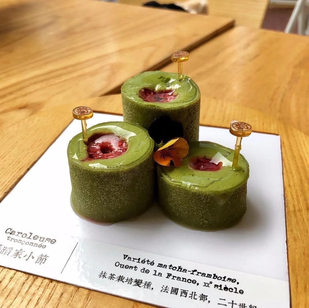 将将的店员说,舞蹈家小节是全店的招牌。这个甜点的名字挺故弄玄虚,但实际它就一抹茶味甜点。一开始看着浓郁的绿色,我就有点惊,因为怕是甜到发腻。但其实吃到嘴里,甜中带酸,非常清新。我问了一下店员,为什么会有这样的神仙口感?店员解释道,因为甜点加入了蔓越莓酱作为夹心,以此中和甜腻感。
